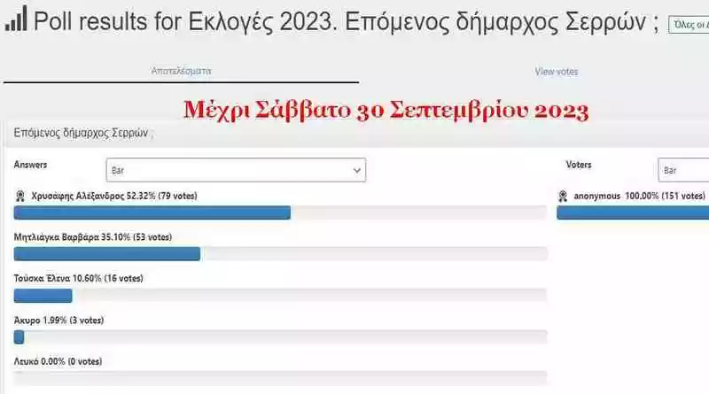 Δημοσκόπηση επόμενος δήμαρχος Σερρών ;